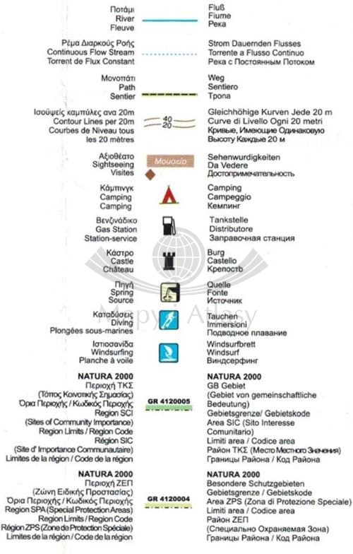 Legenda w sześciu rożnych językach m.in: angielskim, niemieckim i greckim.