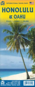 Składana, wodoodporna mapa Oahu w skali 1:80 000 i plan miasta Honolulu w skali 1:18 000 i wydawnictwa ITMB.