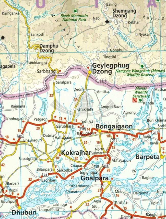 Składana, dwustronna, wodoodporna mapa samochodowo-turystyczna północno-wschodnich Indii oraz Bangladeszu i Bhutanu w skali 1:1 300 000 wydawnictwa Reise Know-How.