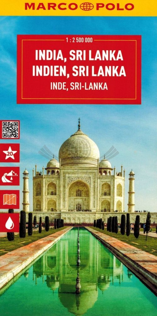Indie i Sri Lanka. Wodoodporna mapa samochodowa. Marco Polo