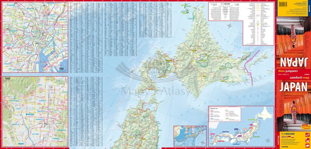 Składana, dwustronna, laminowana mapa samochodowo-turystyczna Japonii w skali 1:1 400 000 wydawnictwa ExpressMap.