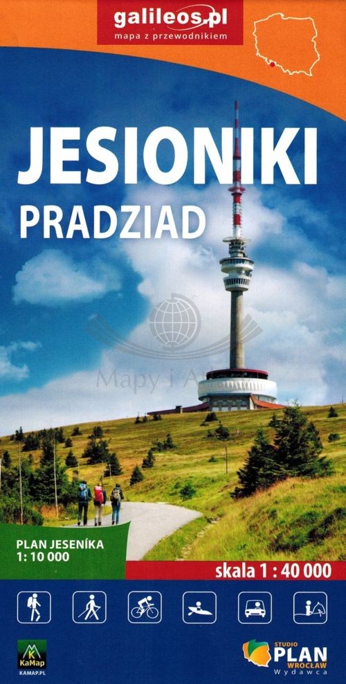 Składana mapa turystyczna Jesioników w skali 1:40 000 wraz z planem miasta w skali 1:10 000 wydawnictwa Galileos.
