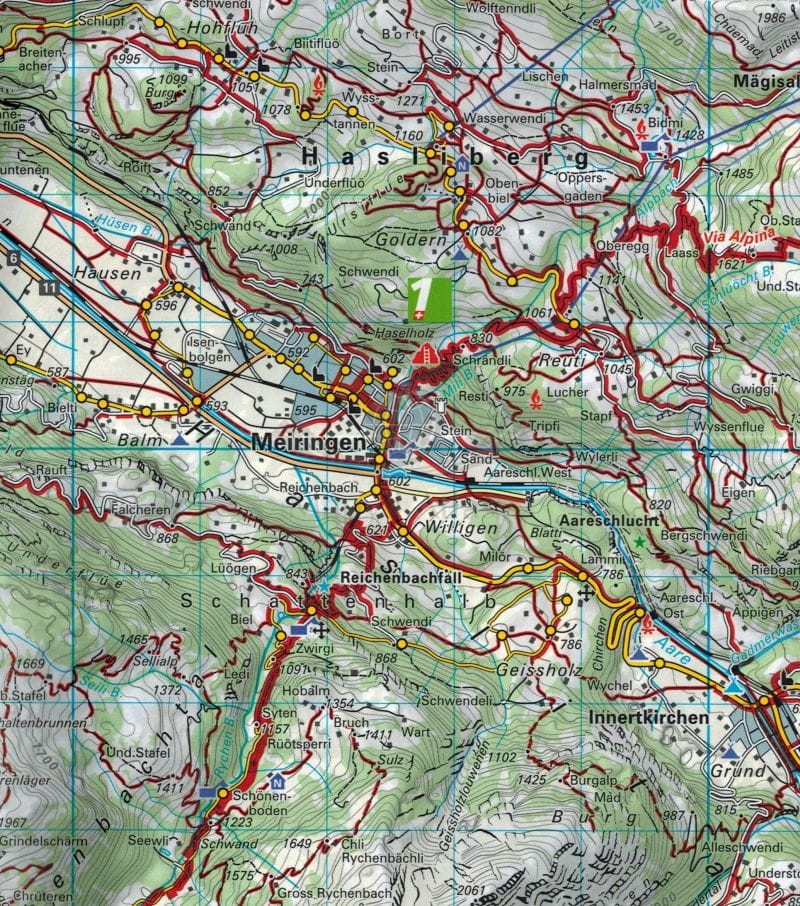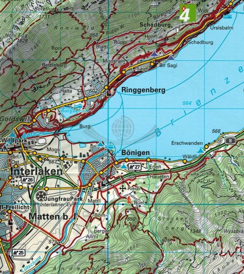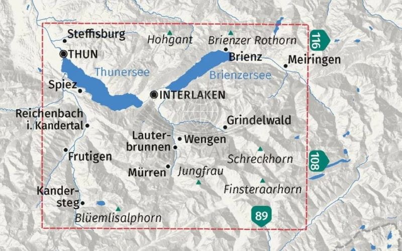 - miejscowości: Steffinsburg, Thun, Brienz, Spiez, Interlaken, Meiringen, Reichenbach, Grindewald, Frutigen, Wengen, Lauterbrunnen, Murren, Kandersteg,