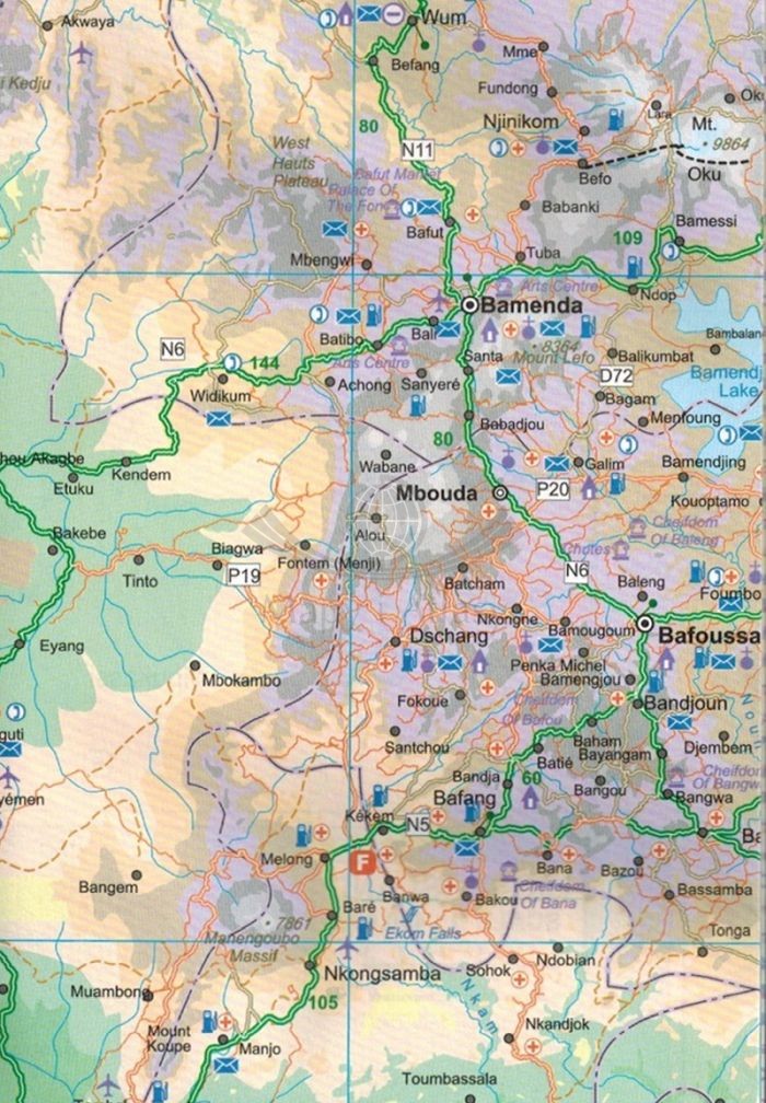 Składana, dwustronna mapa samochodowo-turystyczna Kamerunu w skali 1:1 300 000 oraz Gabonu w skali 1:980 000 wydawnictwa ITMB.