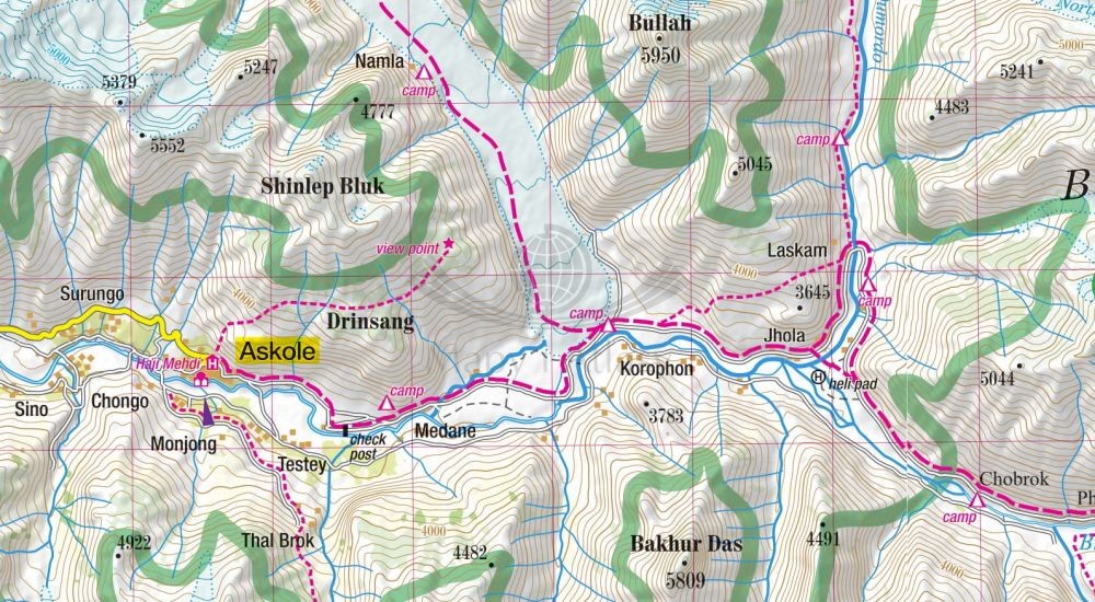 Składana, dwustronna, laminowana mapa trekkingowa Karakorum, K2, Gasherbrum, Broad Peak w skali 1:175 000 wydawnictwa ExpressMap.