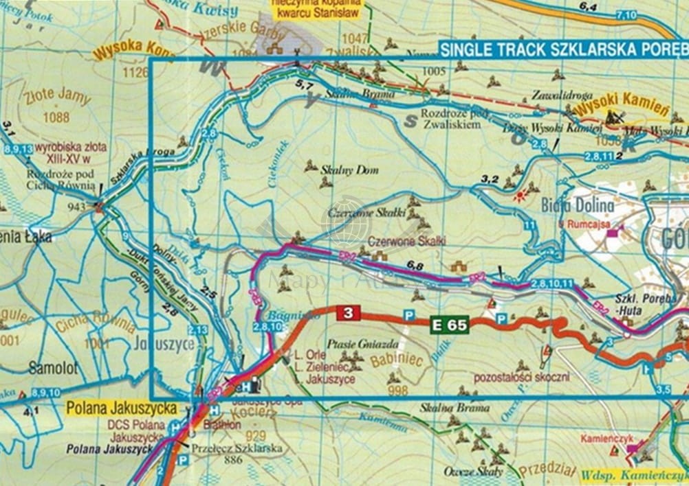 Karkonosze, Góry Izerskie, Kaczawskie, Rudawy Janowickie, Kotlina Jeleniogórska. Mapa rowerowa. Single Track. Galileos