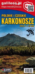 Składana, laminowana, dwustronna mapa turystyczna Karkonoszy w dokładnej skali 1:25 000 wydawnictwa Galileos.
