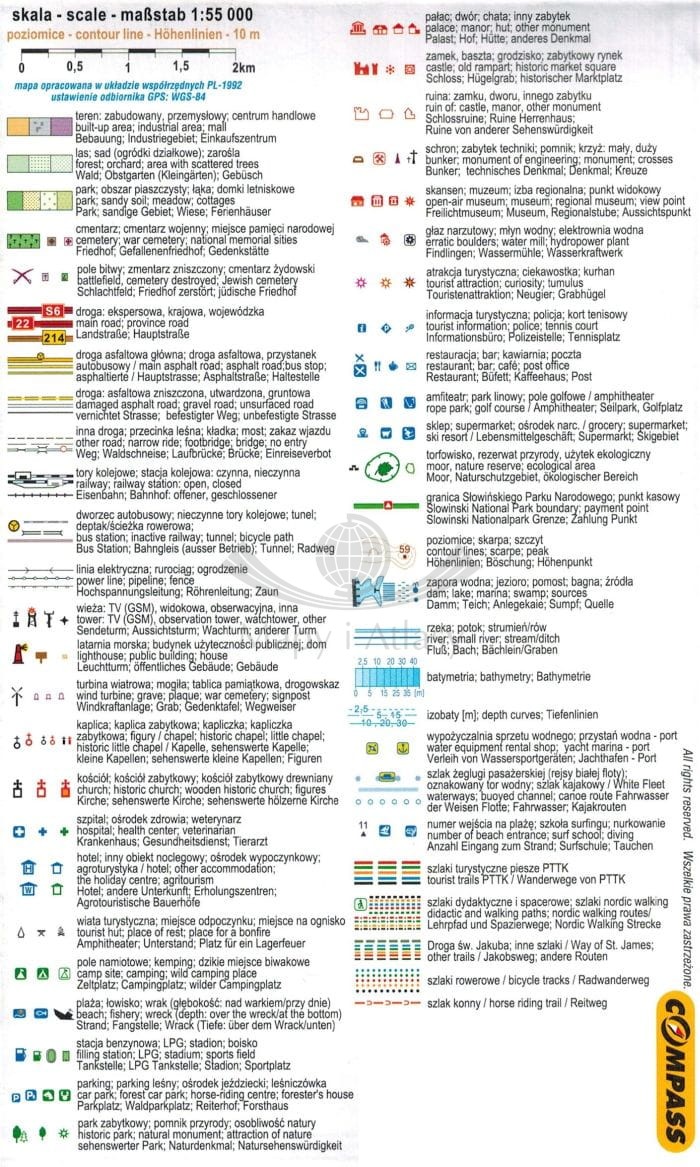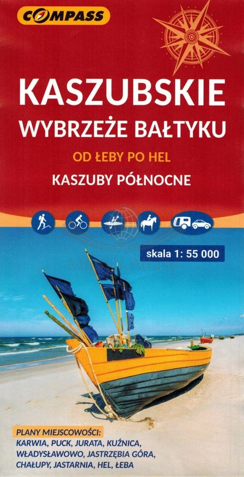 Dwustronna, składana mapa turystyczna kaszubskiego wybrzeża Bałtyku w skali 1:55 000 wydawnictwa Compass.