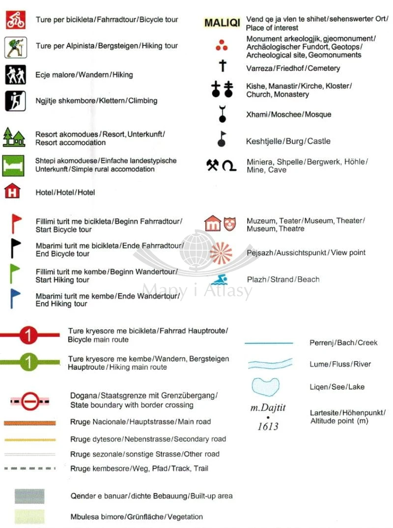 Legenda w języku angielskim, albańskim oraz niemieckim.