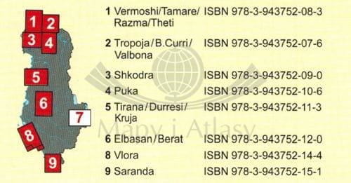 Na rewersie mapy znajduje się obszerny informator turystyczny w języku angielskim i albańskim.