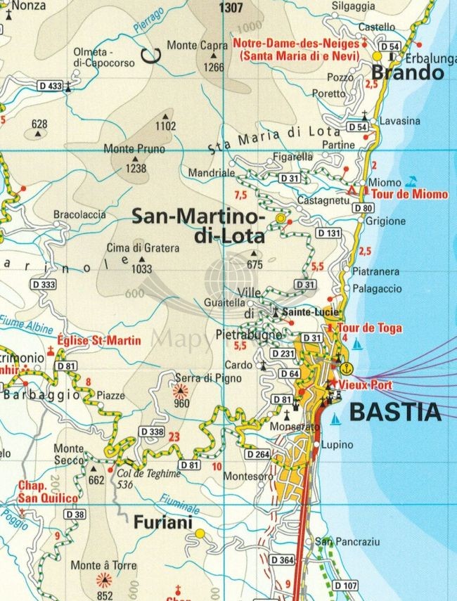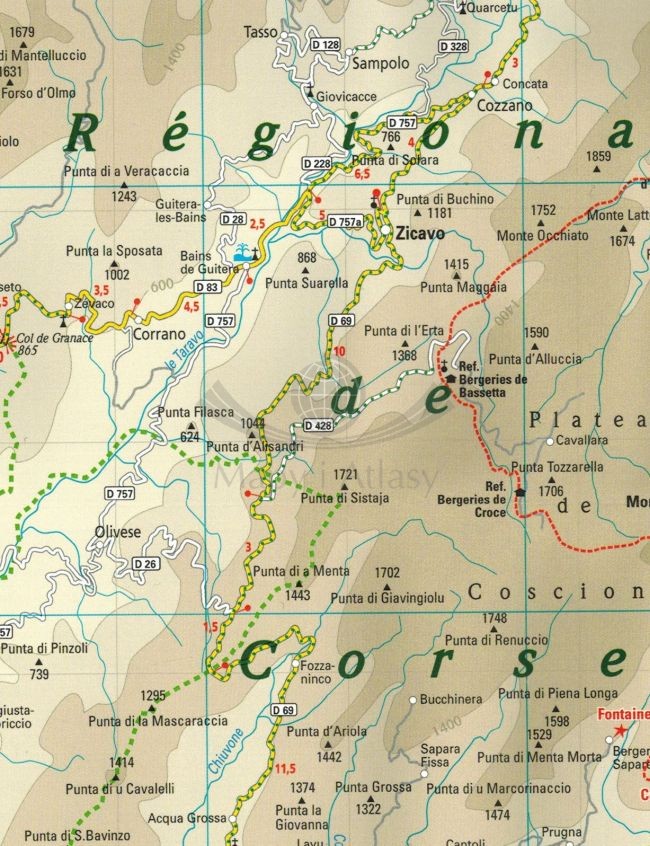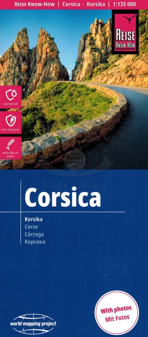 Składana, dwustronna, wodoodporna mapa samochodowo-turystyczna Korsyki w skali 1:135 000 wydawnictwa Reise Know-How.
