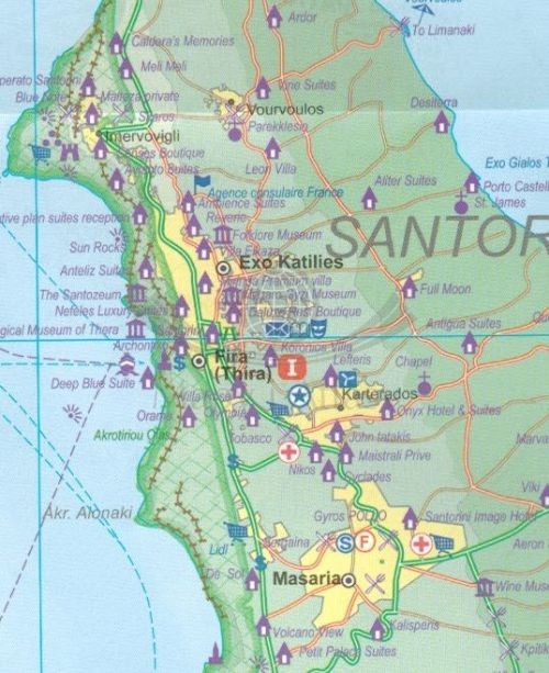 Kreta, Mykonos i Santorini. Wodoodporna mapa samochodowa. ITMB
