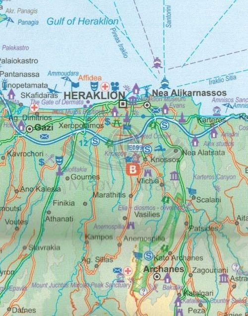 Składana, dwustronna, wodoodporna mapa samochodowa Krety w skali 1:265 000 oraz Mykonos i Santorini w skali 1:70 000 wydawnictwa ITMB. eastern mediterranean