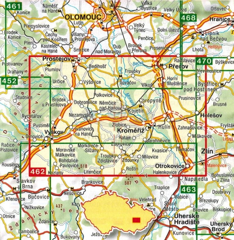 Hana, okolice Kromieryża / Hana, Kromerizsko. Mapa turystyczna 462. Shocart