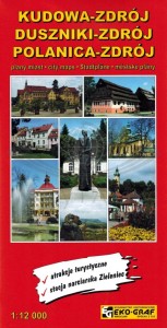 Składany, dwustronny plan miast: Kudowa-Zdrój, Duszniki-Zdrój, Polanica-Zdrój w skali 1:12 000 wydawnictwa EKO-GRAF.