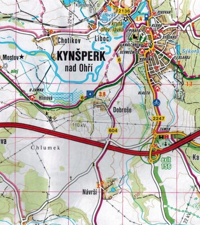 Zasięg mapy to: Plesna i Chodov na północy, Brezova, Hlinky i Hermanov na wschodzie, Ovesne Kladruby, Marianske Lazne i Neualbenreuth na południu oraz Munchenreuth i Hazlov na zachodzie.