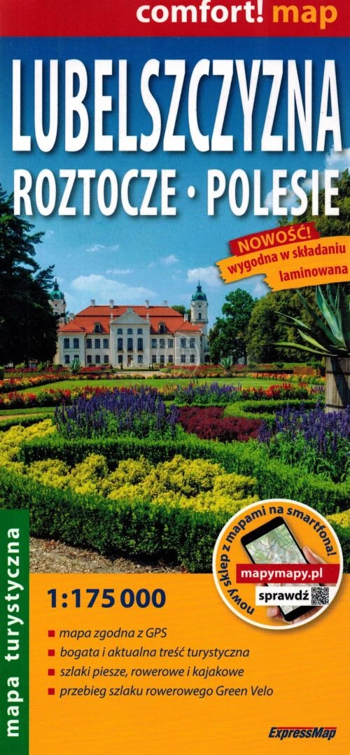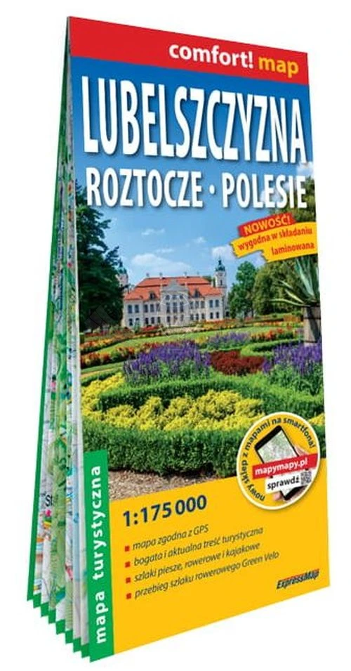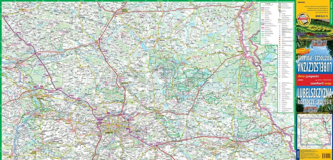 Składana, laminowana mapa turystyczna Lubelszczyzny, Roztocza i Polesia w skali 1:175 000 wydawnictwa ExpressMap.