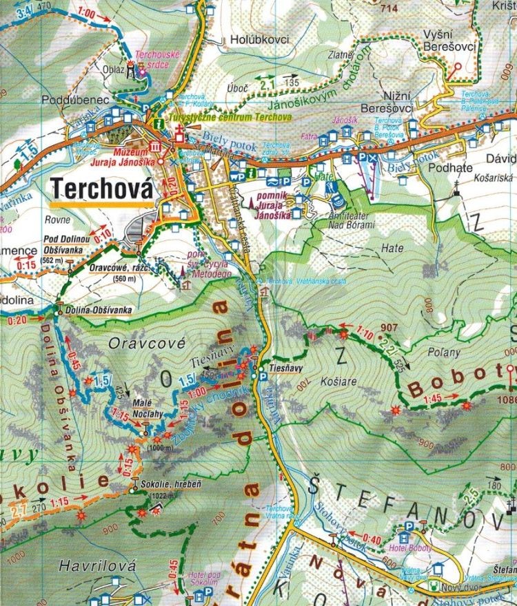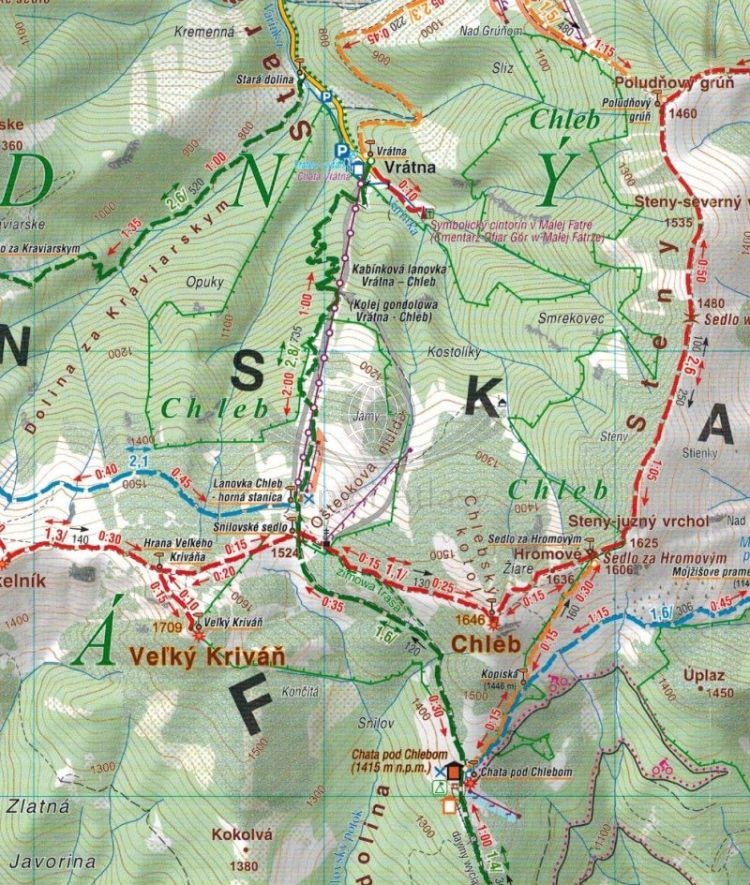 Zasięg mapy wyznaczają słowackie miejscowości: Zázrivá na północy, Stráňavy na zachodzie, Vrútky na południu oraz Žaškov na wschodzie. Na mapie przedstawiony jest obszar Parku Narodowego Mała Fatra oraz jego najbliższe okolice.