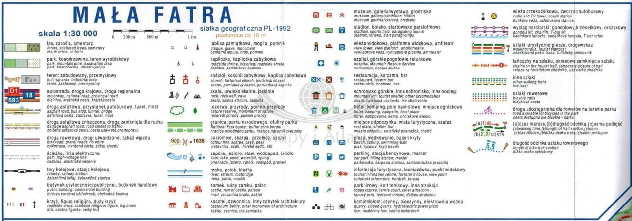 Laminowana, składana mapa turystyczna Małej Fatry Krywańskiej (obszaru Parku Narodowego Mała Fatra) w skali 1:30 000 wydawnictwa Compass.