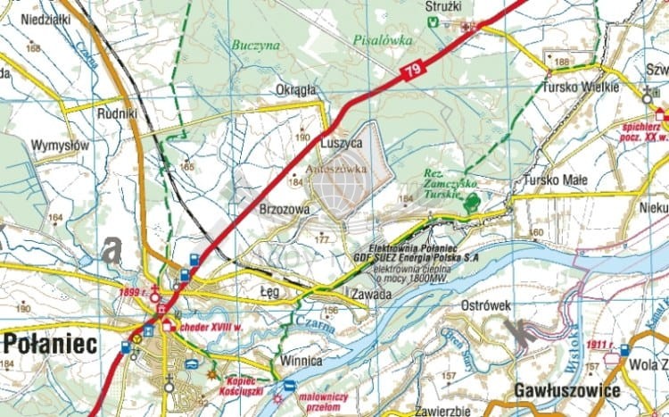 Mapa swym zasięgiem obejmuje: Dębicę (na południowym-wschodzie), Brzeszcze (na południowym-zachodzie), Osiek (na północnym-wschodzie) oraz Siewierz (na północnym-zachodzie)...