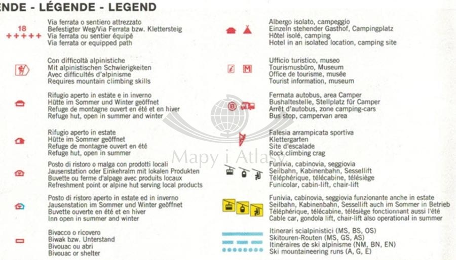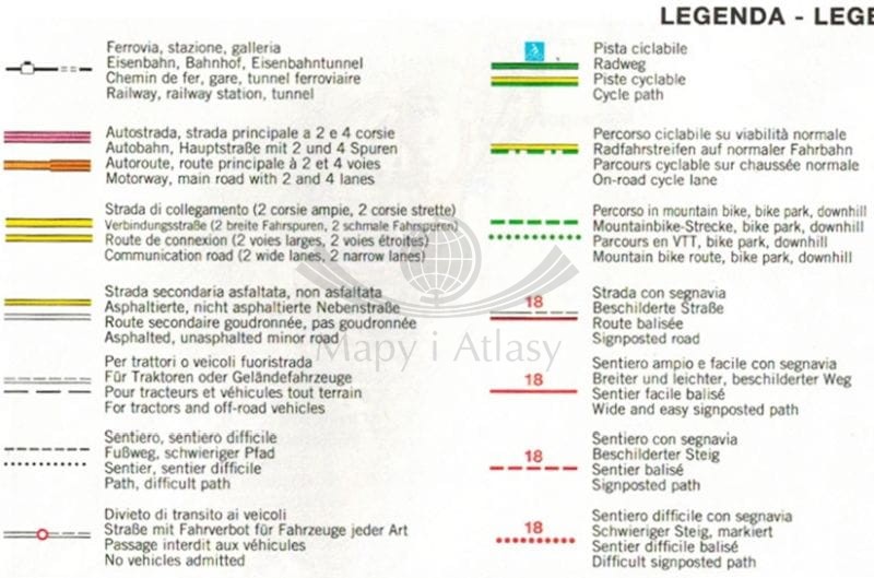 Legenda w języku: angielskim, niemieckim, włoskim oraz francuskim.