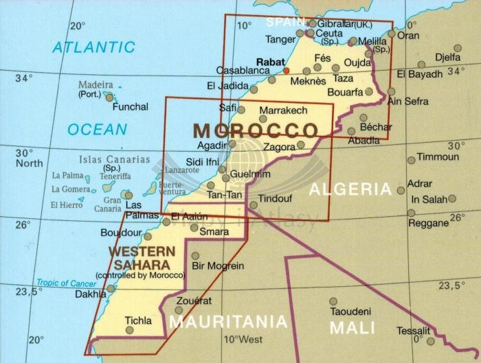 Składana, dwustronna, wodoodporna mapa samochodowo-turystyczna Maroka w skali 1:1 000 000 wydawnictwa Reise Know-How.