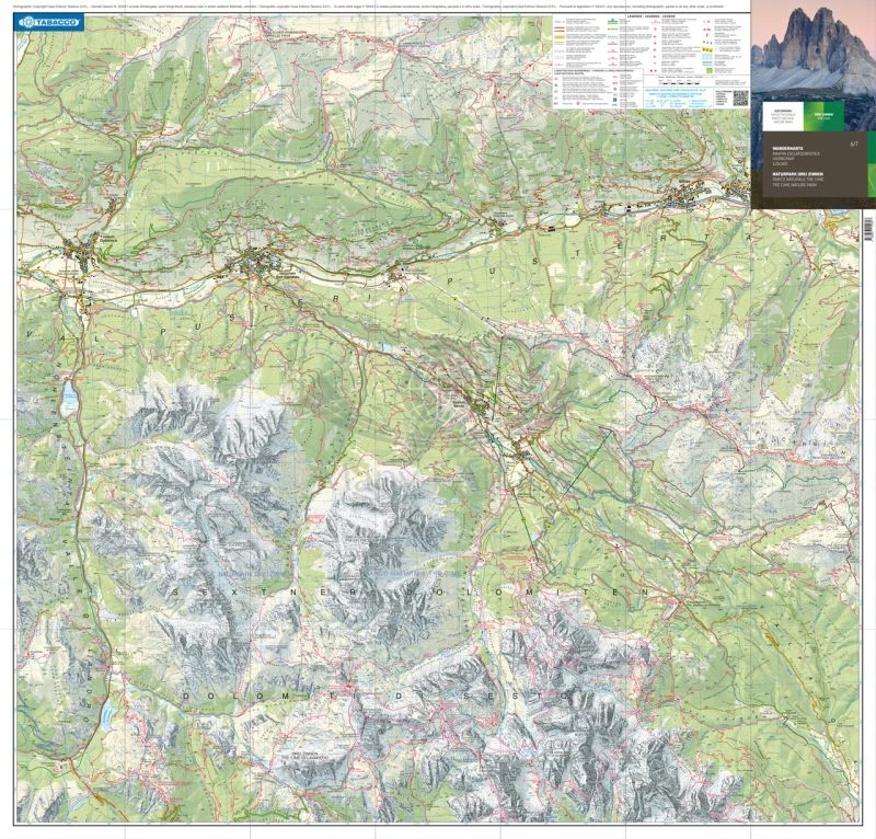 Składana mapa turystyczna Naturpark Drei Zinnen - Parco Naturale Tre Cime di Lavaredo w skali 1:25 000 wydawnictwa Tabacco.