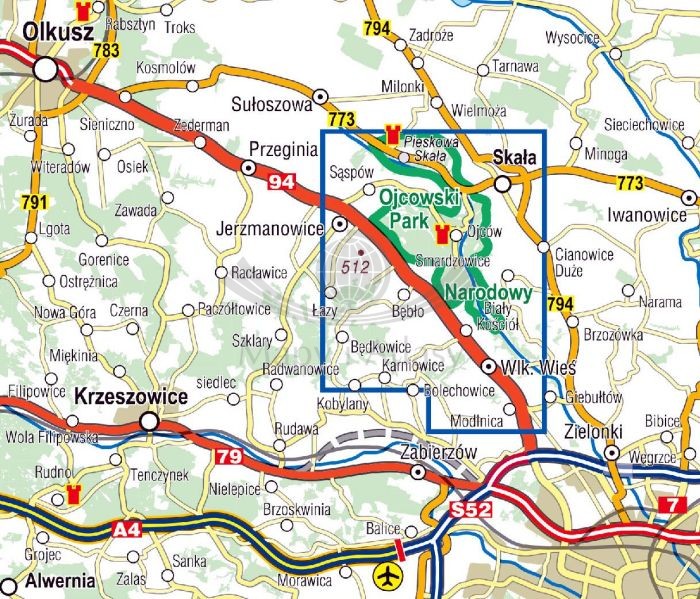 Przedstawia atrakcyjne tereny turystyczno-rekreacyjne na północ od Krakowa. Obejmuje obszar Ojcowskiego Parku Narodowego (wraz z enklawami) oraz tereny przyległe (od Sułoszowej na północy do Modlnicy na południu oraz od Jerzmanowic na zachodzie do Skały na wschodzie).