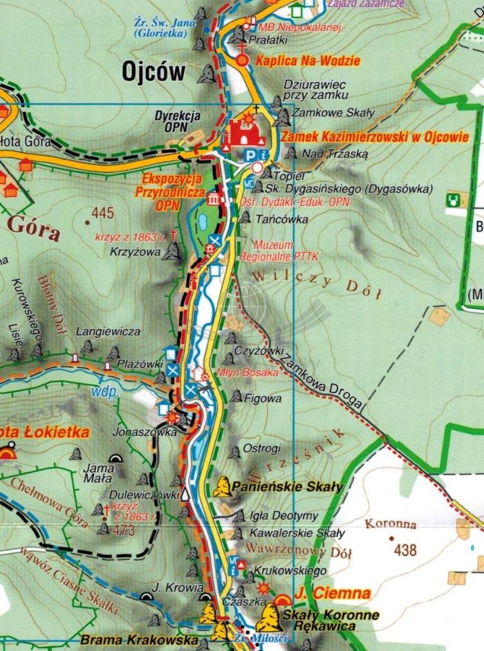 Na rewersie mapy zamieszczono informator z fotografiami oraz plan Ojcowa w skali 1:12 000.
