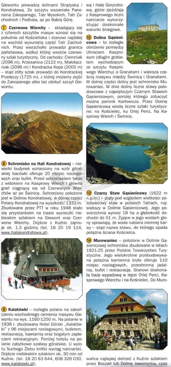 Tatry. Giewont, Kasprowy Wierch. Mapa atrakcji turystycznych. Galileos