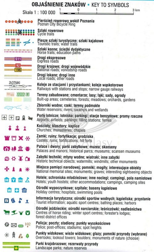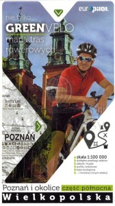 Składana mapa turystyczna tras rowerowych północnej części Wielkopolski - Poznania i okolic w skali 1:100 000. Legenda w języku: polskim i angielskim.