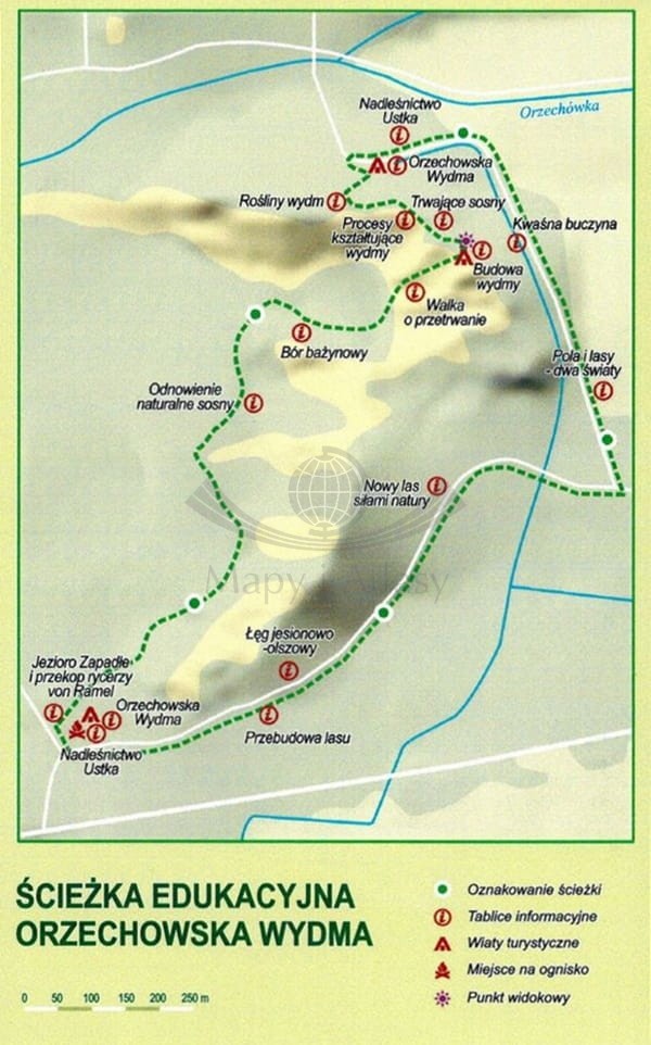 Publikacja zawiera dodatkowo plan ścieżki edukacyjnej „Orzechowska Wydma”.