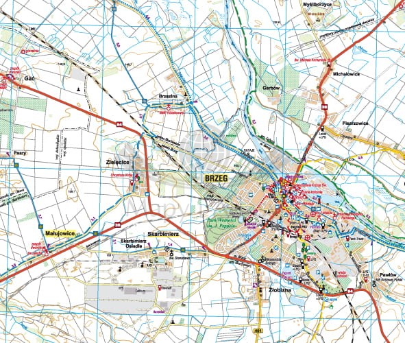 Okolice Wrocławia, część południowo-wschodnia. Oleśnica, Jelcz-Laskowice, Brzeg, Oława. Mapa turystyczna / Plan miasta. Galileos