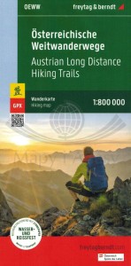 Składana, jednostronna, wodoodporna mapa turystyczna szlaków długodystansowych w Austrii w skali 1:800 000 wydawnictwa Freytag & Berndt.