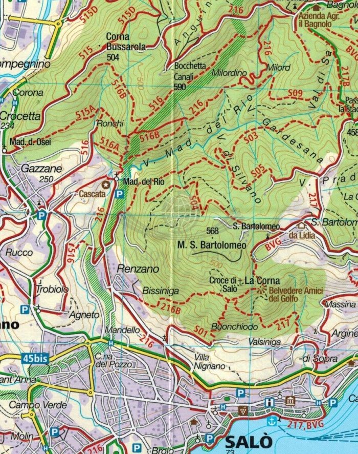 - miejscowości: Riva, Limone sul Garda, Storo, Tremosine, Magasa, Valvestino, Malcesine, Capovalle, Tignale, Gargnano, Idro, Vestone, Sabbio, Toscolano-Maderno, Villanuova, Salo, Toscolano- Maderno, Torri
