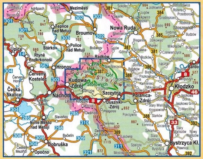 Składana, laminowana, kieszonkowa mapa turystyczna Parku Narodowego Gór Stołowych w skali 1:35 000 wydawnictwa Compass.