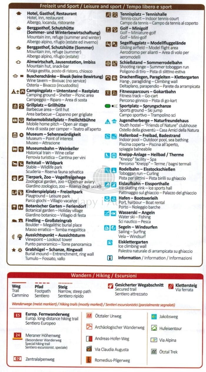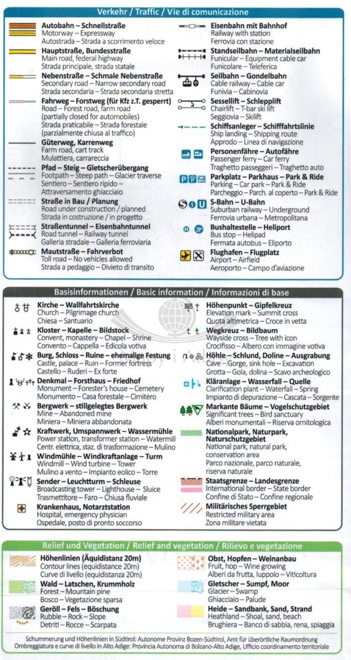 Legenda w języku angielskim, włoskim oraz niemieckim.