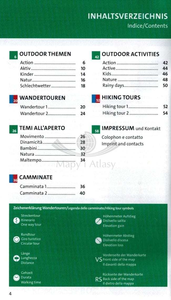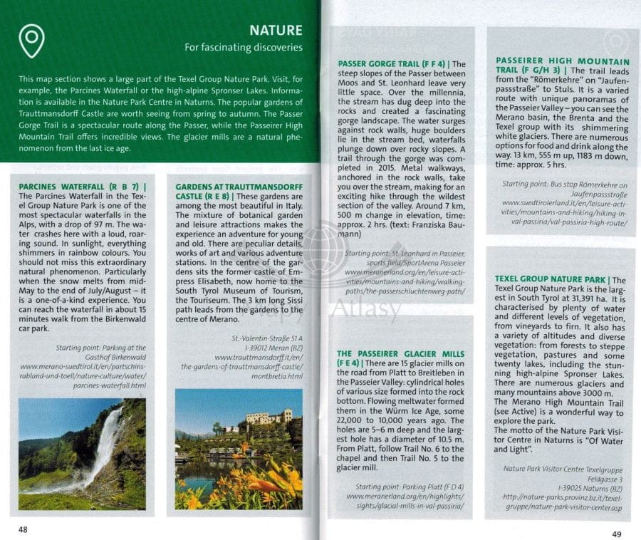 Do mapy dołączono 60-stronnicowy, kolorowy mini przewodnik w języku angielskim, niemieckim oraz włoskim. Przewodnik zawiera kolorowe zdjęcia, najważniejsze informacje dotyczące natury, opisy tras wędrówek oraz infrastrukturę rekreacyjną.