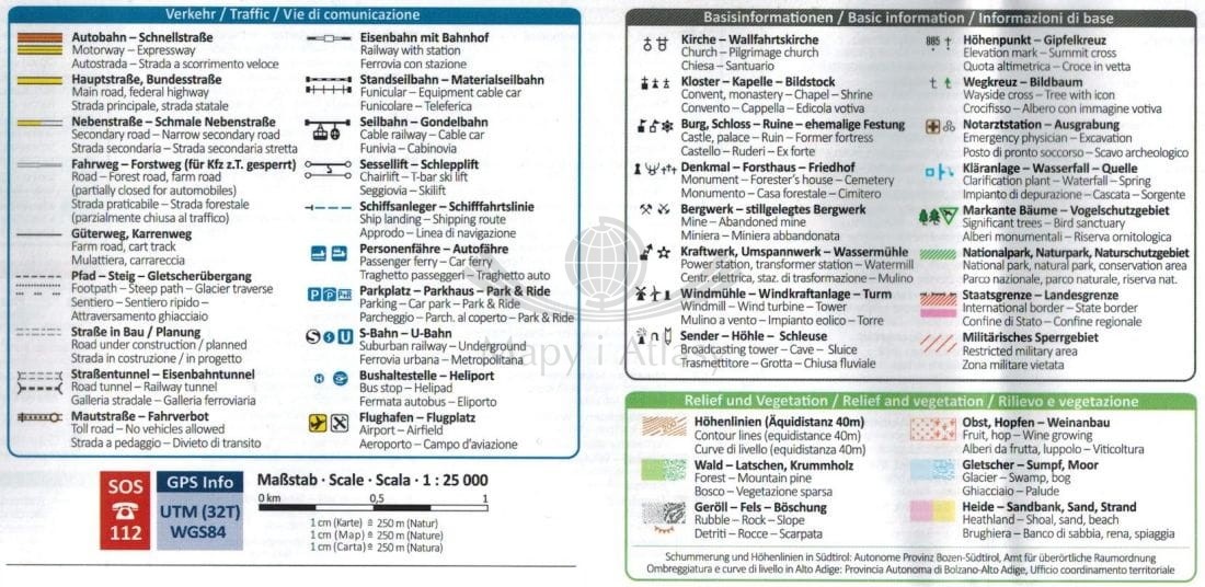 Legenda w języku: angielskim, niemieckim oraz włoskim.