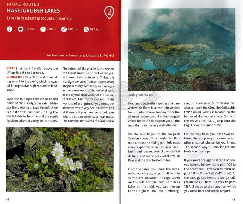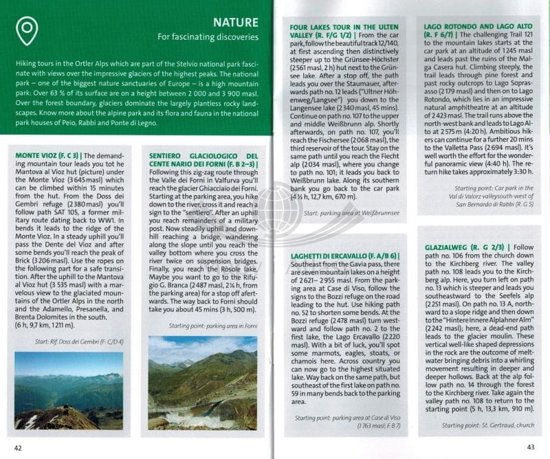 Do mapy dołączono 52-stronnicowy, kolorowy mini przewodnik w języku angielskim niemieckim oraz włoskim. W przewodniku zamieszczono kolorowe zdjęcia z najważniejszymi informacjami dotyczącymi bazy noclegowej, zabytków i infrastruktury rekreacyjnej, a także opisanymi trasami wędrówek.