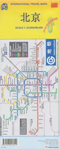 Wodoodporny plan miasta Pekin w skali 1:23 000 wraz z mapą samochodową Wielkiego Muru Chińskiego w skali 1:280 000.