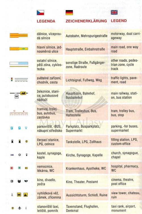 Legenda w języku: czeskim, niemieckim i angielskim.