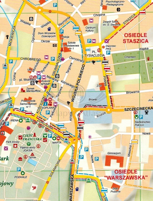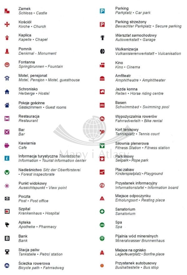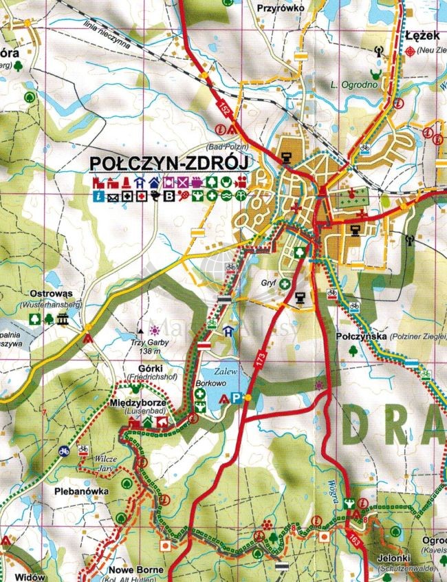 Na mapie zaznaczono m.in.: