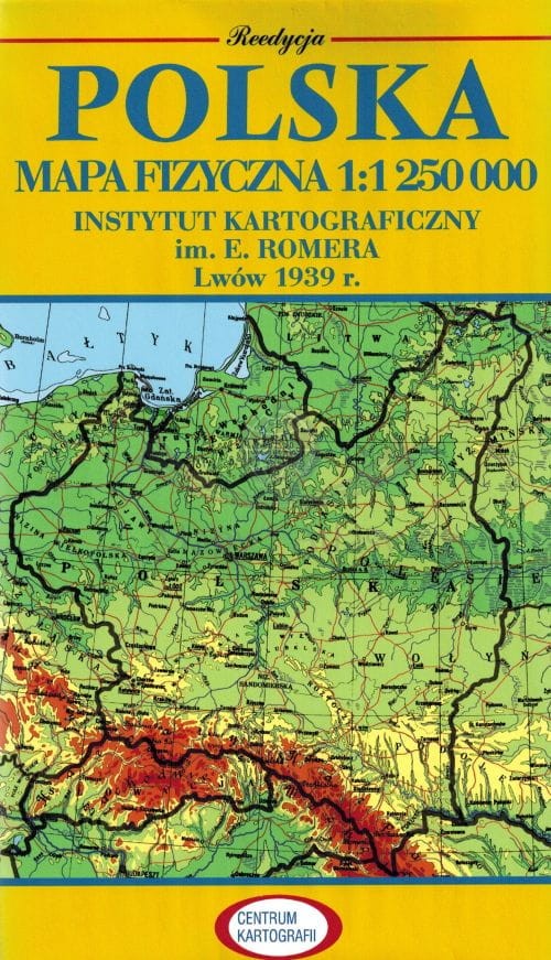Składana mapa fizyczna Polski w skali 1:1 250 000 jest reedycją, opracowaną z połączenia trzech map autorstwa Eugeniusz Romera i Teofila Szumańskiego (Polska fizyczna. Część północna, środkowa i południowa) zamieszczonych w Powszechnym Atlasie Geograficznym, wydanym przez Instytut Kartograficzny we Lwowie w 1939 r.