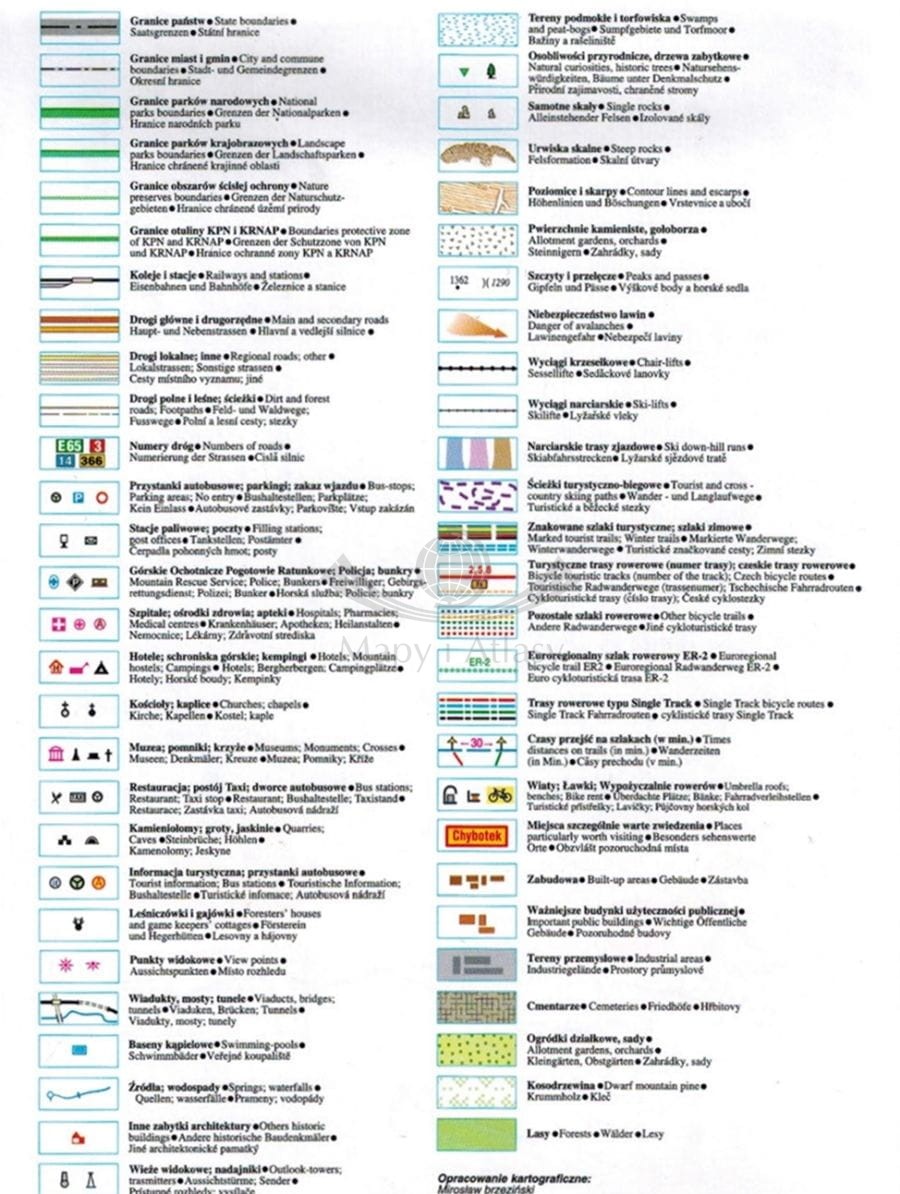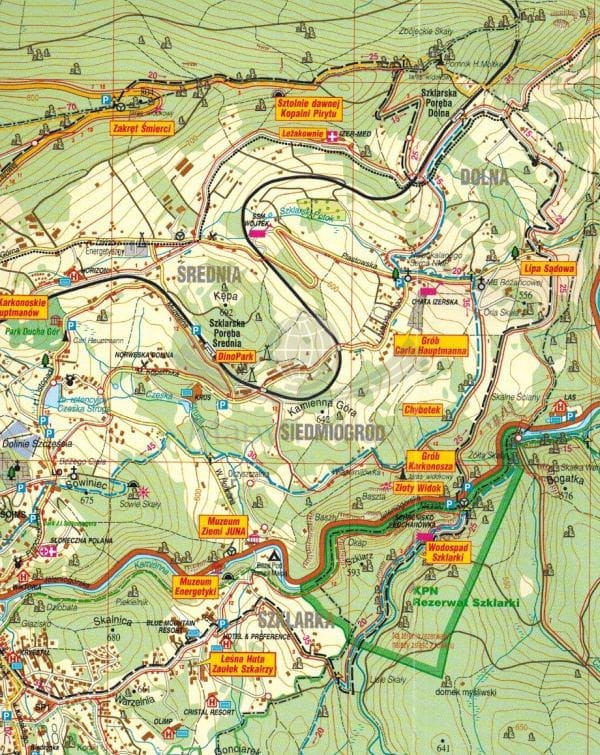 - plany miast w skali 1:9 000: Karpacz (centrum), Świeradów-Zdrój oraz Szklarska Poręba (centrum),