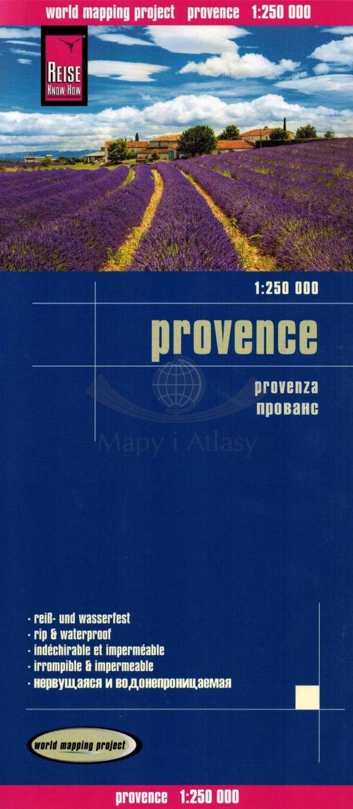 Składana, dwustronna, wodoodporna mapa samochodowo-turystyczna Prowansji w skali 1:250 000 wydawnictwa Reise Know-How.