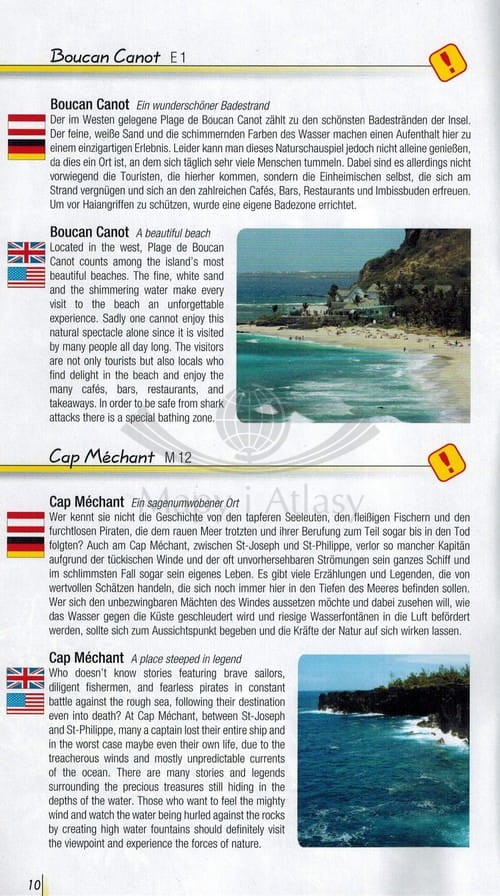 Składana, dwustronna mapa samochodowo-turystyczna wyspy Reunion położonej na Oceanie Indyjskim w skali 1:50 000. Legenda w języku: angielskim, niemieckim, francuskim, włoskim, hiszpańskim oraz holenderskim...