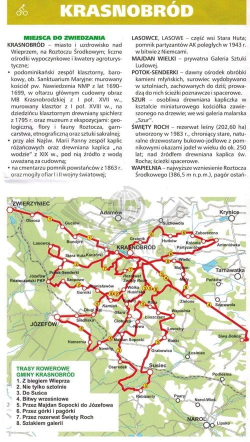 Na rewersie zamieszczono informator krajoznawczy po gminach tego regionu z propozycjami tras rowerowych.