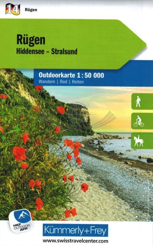 Składana, dwustronna, wodoodporna mapa turystyczna Rugii w skali 1:50 000 wydawnictwa Kummerly+Frey.