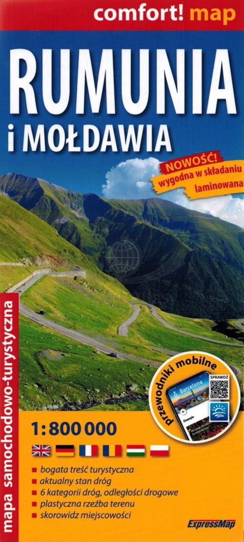 Składana, dwustronna, laminowana mapa samochodowo-turystyczna Rumunii i Mołdawii w skali 1:800 000 wydawnictwa ExpressMap.